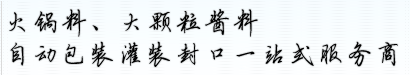 可按要求定做各類火鍋底料包裝機(jī)、火鍋底料灌裝生產(chǎn)線、辣椒醬、果醬、火鍋料包裝機(jī)生產(chǎn)線等醬料產(chǎn)品的包裝等,同時可配置理瓶機(jī)、貼標(biāo)機(jī)、噴碼機(jī)、開箱、裝箱機(jī)、收瓶機(jī)等。